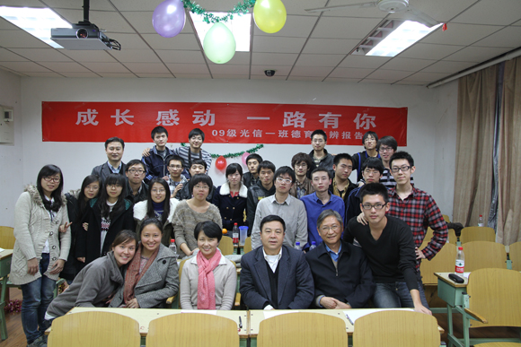 答辩在不息的掌声中顺利落下帷幕,通过这次答辩,大家彼此分享了学习、生活中的奋斗历程以及两年来的感受和顿悟,表明了自己的决心和目标,我们更深刻地认识了自我,明确了自我实现的价值。这次答辩会使得我们更加热爱我们的班集体,热爱我们的老师和同学。老师们的寄语让我们更加深刻的思索人生的目标和意义。最后,与会全体老师同学合影留念,大会圆满结束。