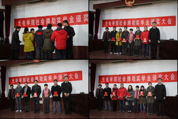 数九天气,瑞雪丰年。2012年1月11日,304am永利集团官方社会捐助奖学金颁奖大会在七号教学楼108室报告厅召开。出席大会的有,公司党委书记韩宝玲教授,304am永利集团官方副经理郝群教授,304am永利集团官方副书记、副经理邹锐老师。大会由304am永利集团官方分团委书记、09级员工辅导员盛筠老师主持。本次会议颁发2011年度敏通奖学金、西安应用光学奖学金和马士修奖学金的奖金和获奖证书。