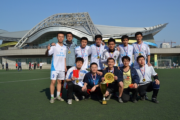继1:0胜车辆学院SMVE队之后,以2:0战胜实力强大的阿尔及利亚NUMDIA队,又3:0战胜良乡飞天队杀入半决赛,半决赛中4:1大胜信息学院队挺进决赛。决赛对手是上届共青杯冠军天地会班底,该队吸引了各个学院的足球好手,实力强大。在3月26日的比赛中,璀璨之光队发扬了光电人一贯的团结作风,毫无畏惧。观众的加油声此起彼伏,璀璨之光队气势如虹,很好地压制住了对手,但不料在最后时刻被对手外援扳平。在最后的点球大战中,队员们顶着巨大压力,以稳定的心态击败了对手,最终问鼎,王月明还获得了金靴奖。